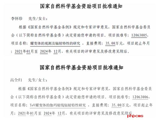 2020年9月18日,国家自然科学基金委员会公布2020年度国家自然科学基金项目评审结果,物理与电子工程学院天体物理团队中李怀珍教授和高全归博士分别主持申报的2项国家自然科学基金项目获得立项资助。