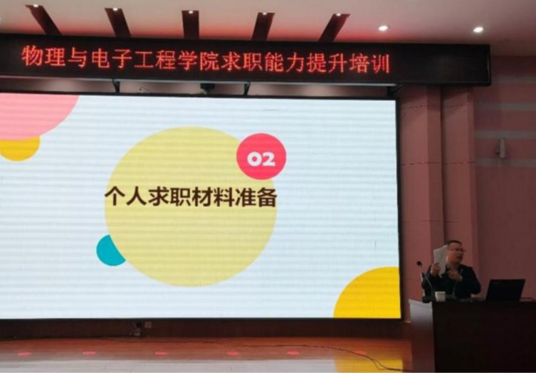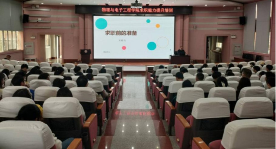 3月3日15:00,物理与电子工程学院在科学讲堂举办2023届毕业生求职能力提升培训,校学生处副处长、就业指导中心负责人宋树兵受邀主讲,学院副书记沐士光、辅导员回忆和学院2023届全体毕业生参加了本次培训。