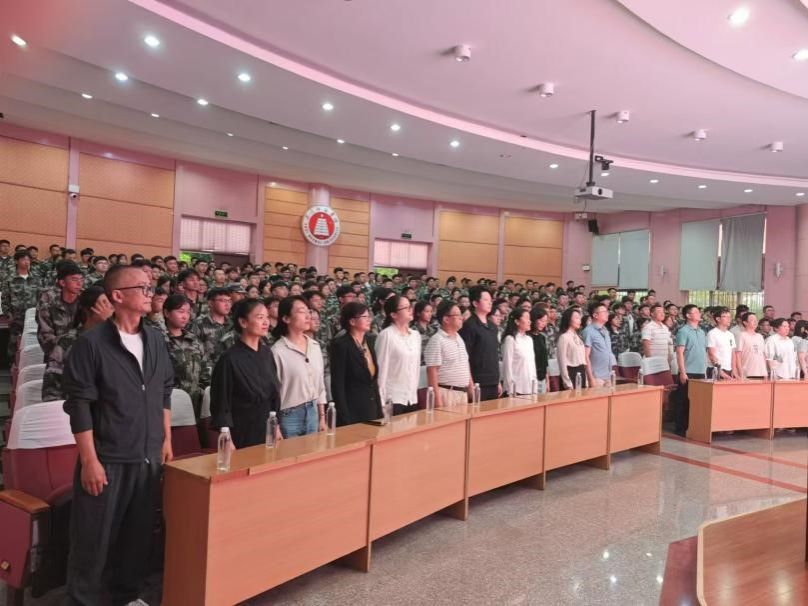 杨扬老师向新生们阐述了安全教育要点:在军训中,务必关注自身健康,一旦发现不适立即报告,同时遵守纪律,服从教官指挥,既是对自己负责,也是对团队负责;个人外出时,需按规定报备,保持个人卫生,远离酗酒滋事;特别提醒要警惕电信诈骗,牢记“任何要求先转账的行为均为诈骗”,并倡导大家树立正确的消费观和价值观。