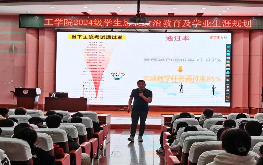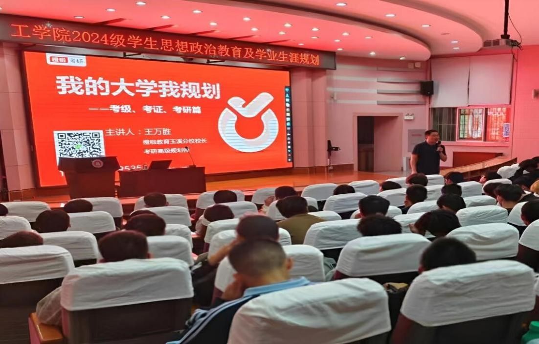 2024年10月10日,工学院邀请橙啦教育玉溪分校校长王万胜老师为2024级学生开展学业生涯规划,讲座在科学讲堂进行,2024级全体学生参加。