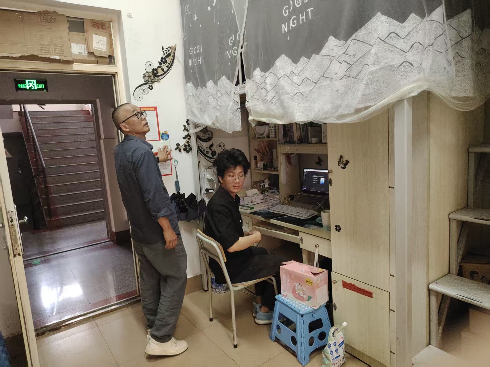 在走访过程中,老师们还对宿舍制度建设、卫生情况、安全隐患、学风建设四方面进行了评分。通过以评促改的方式,让同学们总体提高宿舍建设水平,让同学们意识到宿舍作为生活和学习的主阵地,大家要共同用建设,共同维护,为自己的大学四年生活留下美好回忆。
