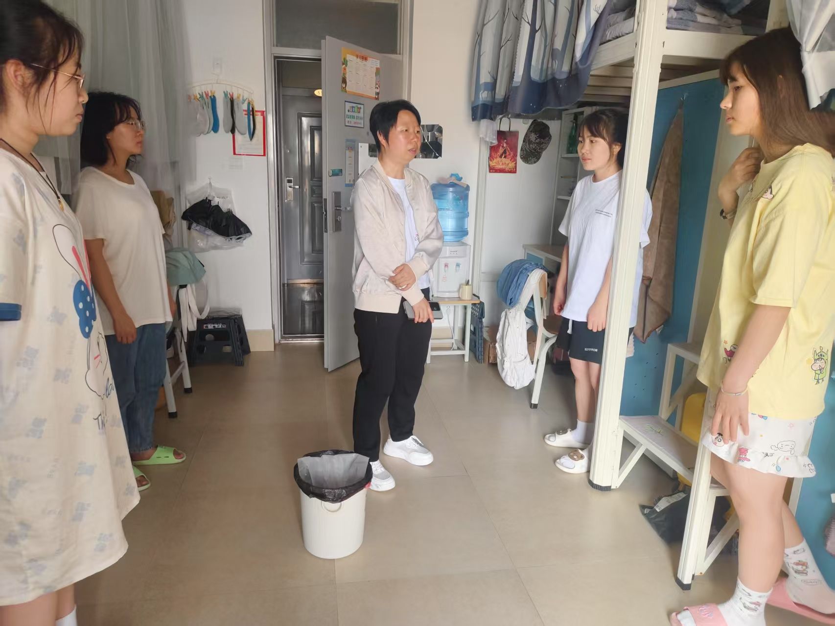 为强化学生宿舍管理,营造安全文明的住宿环境,4月21日下午,工学院组织学院全体教师,深入学生宿舍开展本学期宿舍安全卫生检查。本次走访覆盖学院所有宿舍,围绕宿舍制度建设、宿舍卫生、安全隐患、学风建设等情况展开检查,让学生和老师面对面交流,了解学生生活状态,推动校园文明建设走深走实。