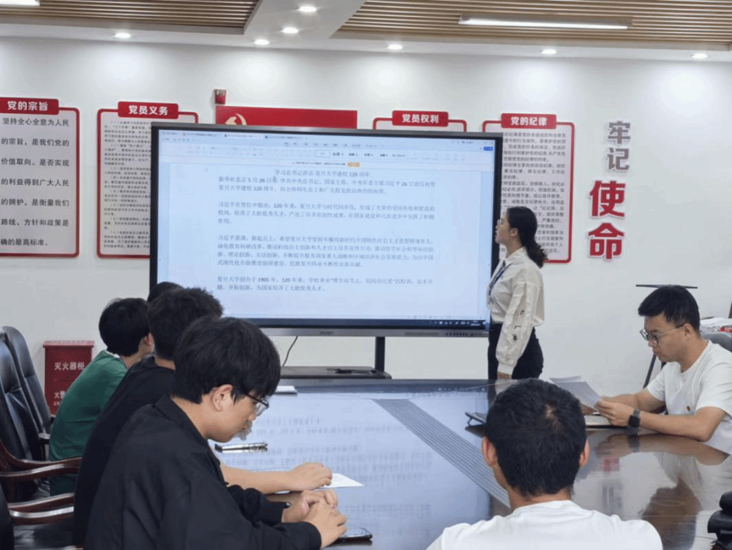 会议第一议题,学习“习近平致复旦大学建校120周年的贺信”,由学院团委副书记刘佳颖领学。学习强调,要深刻领会习近平总书记对青年工作的殷切期望,将贺信精神融入日常工作学习中,参会成员结合学习内容展开讨论,并表示将以实际行动践行习近平总书记的嘱托,为学院发展贡献青春力量。