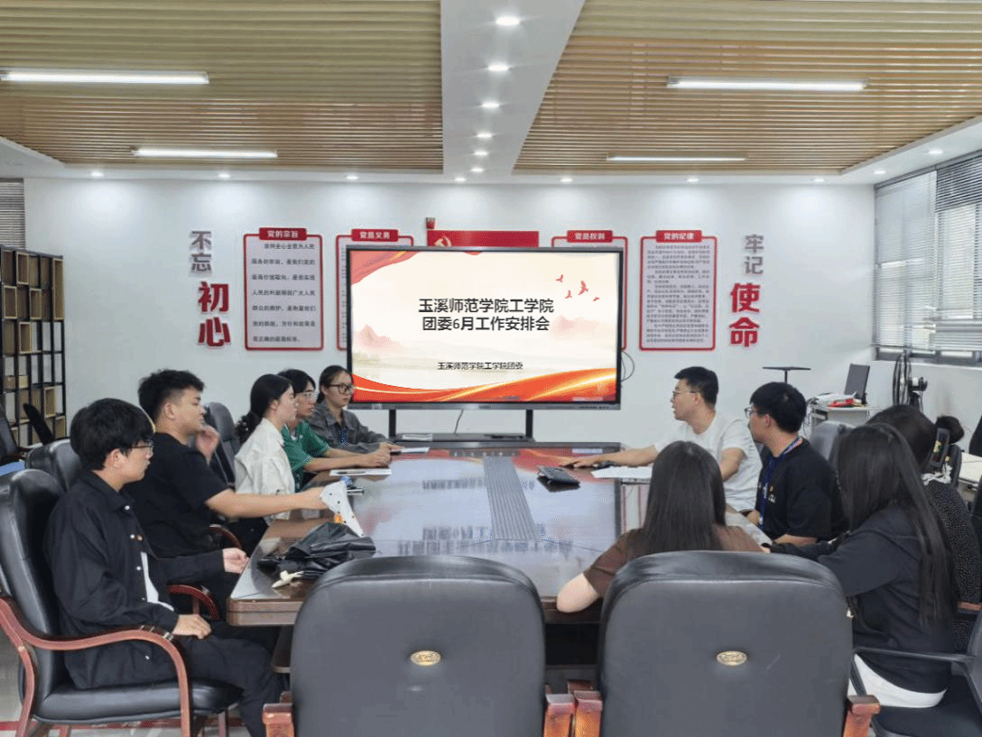 2025年6月26日下午玉溪师范学院工学院团委在实训大楼C104召开六月工作安排会。会议由工学院团委书记苏明超老师主持,全体团委委员及各班团支部书记参加会议。