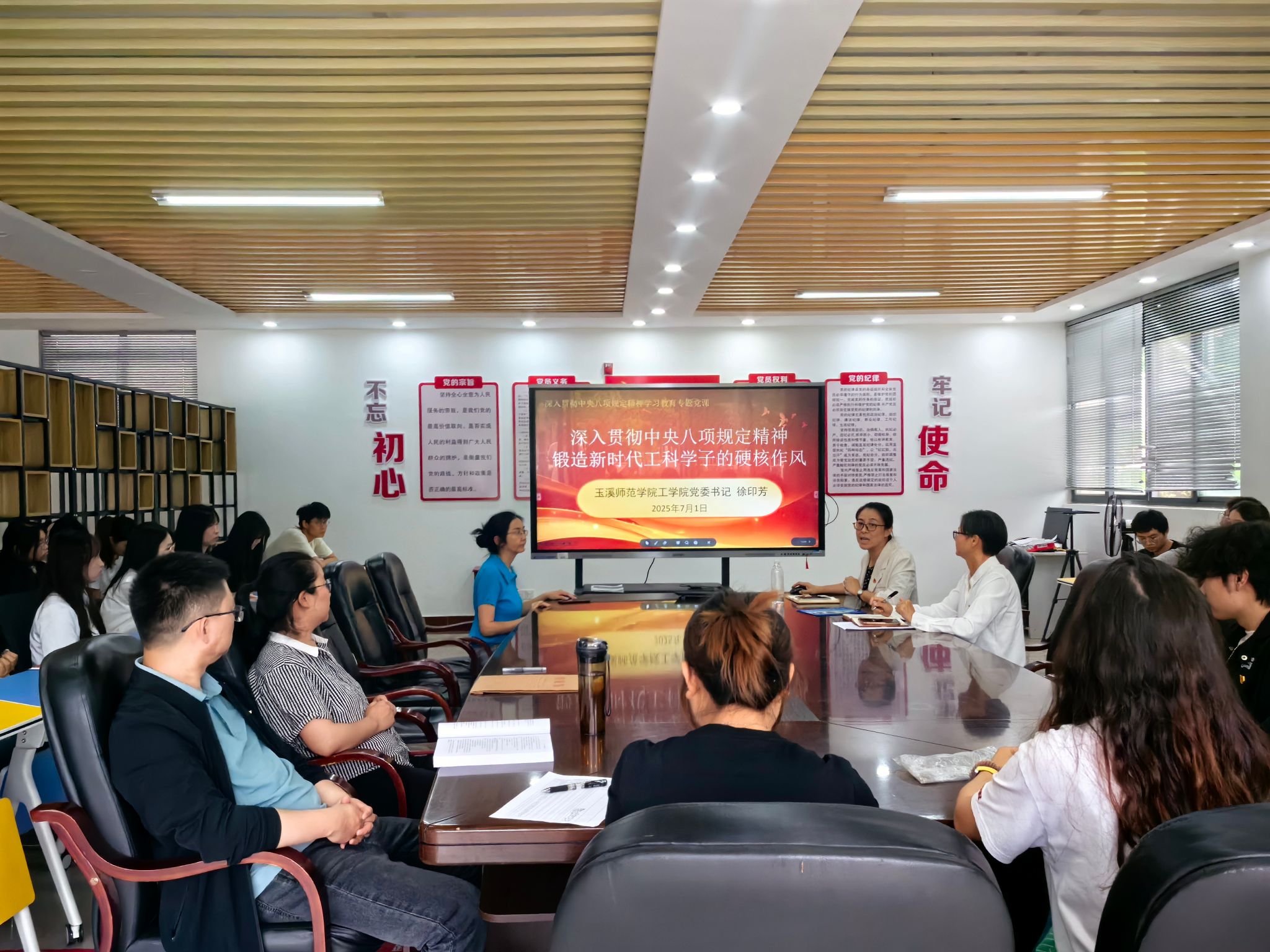 为深入学习贯彻习近平总书记关于作风建设的重要论述,引导学生党员深刻领会中央八项规定精神的核心要义和实践要求,2025年7月1日,工学院党委书记徐印芳以 “深入贯彻中央八项规定精神 锻造新时代工科学子的硬核作风” 为题,为全院学生党员讲授专题党课。学院全体学生党员、预备党员参加学习。