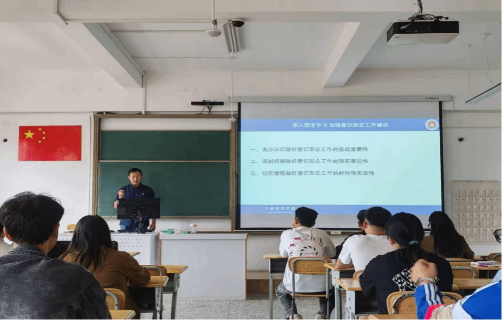 杨扬书记围绕“深入理论学习,加强意识形态工作建设”这一主题,从三个方面展开了阐述:一、要充分认识做好意识形态工作的极端重要性,树立高度的政治责任感和使命感;二、要深刻把握当前意识形态工作的现实紧迫性,面对复杂多变的国内外环境,时刻保持警惕;三、要切实增强工作的针对性与实效性,通过创新方式方法,将意识形态工作做深做实,真正筑牢师生的思想防线。