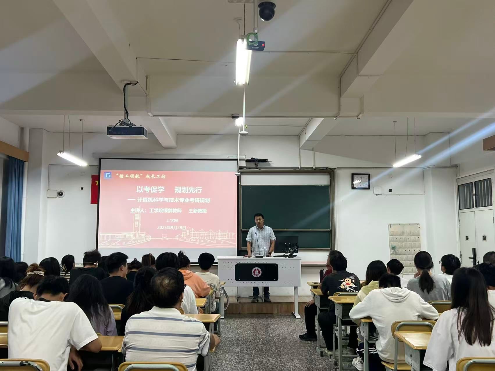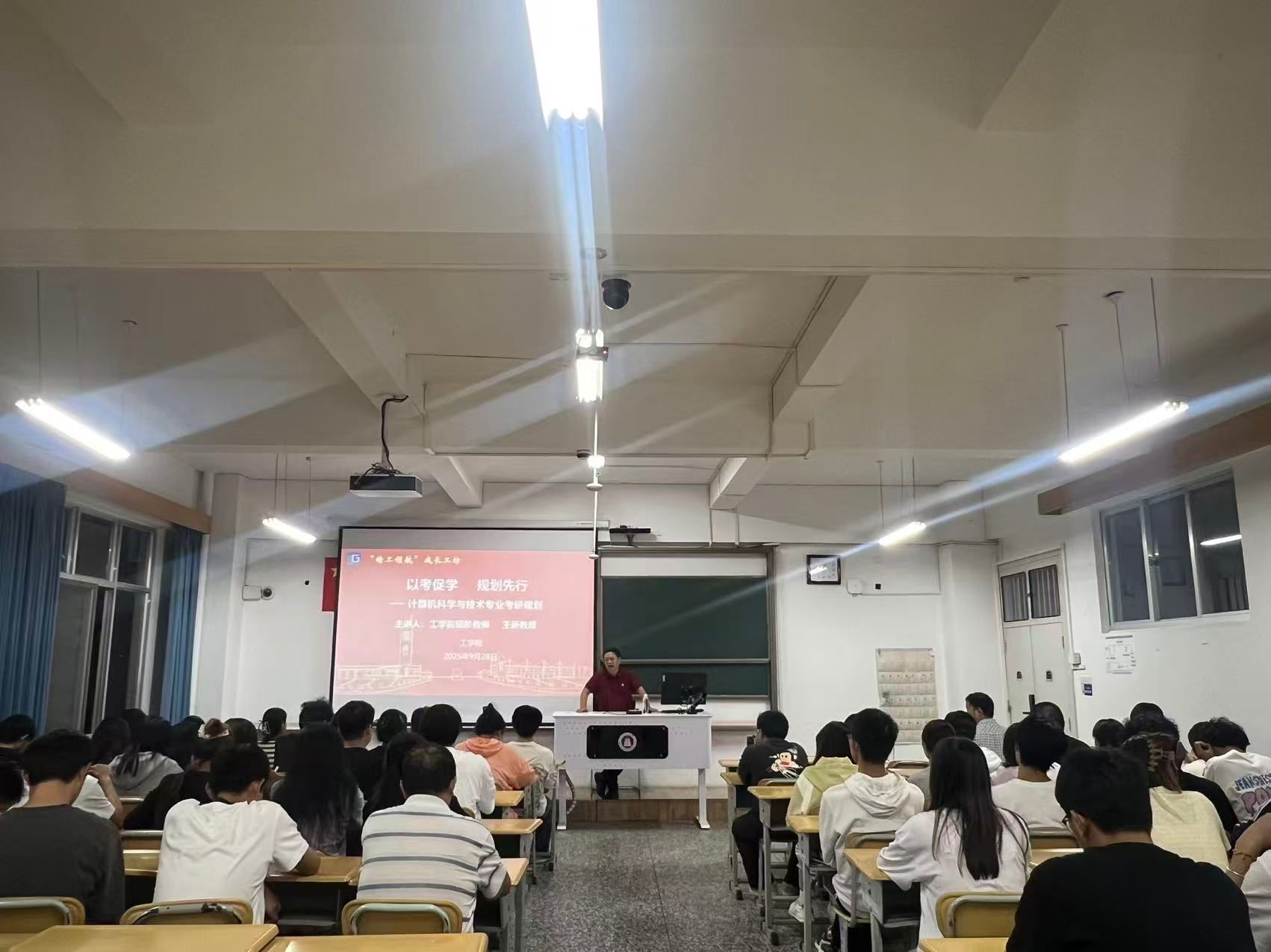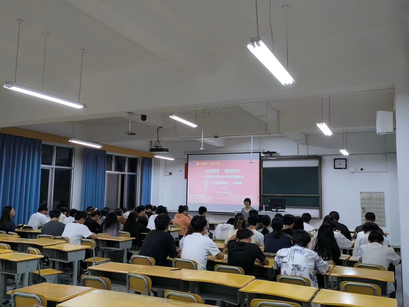 为帮助2023级计算机科学与技术专业学子明晰未来发展方向,激发考研热情,树立备考信心,工学院于9月28日19:00在13教110举办“以考促学,规划先行”考研专题动员大会。本次动员会特邀学院“银龄教师”王新教授主讲,杨扬副书记主持,辅导员詹婷,班主任范茂彦以及2023级计算机科学与技术专业98名学生参加。