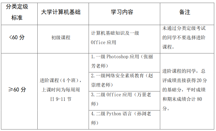 五、《大学计算机基础》课程选课说明及注意事项