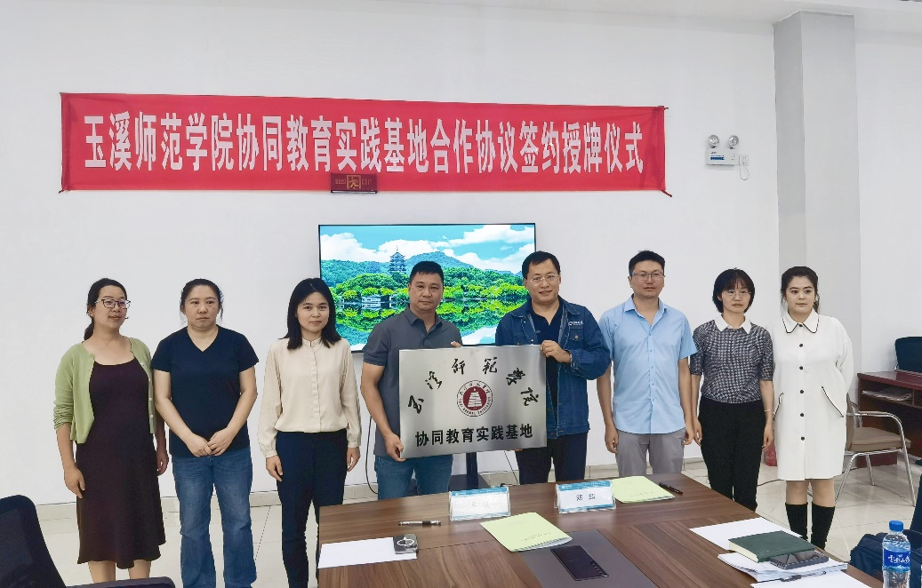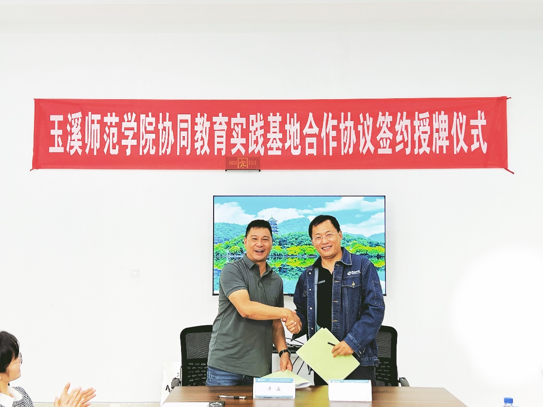 羊波院长与邓超董事长共同正式签署“玉溪师范学院协同教育实践基地”合作协议,并为“玉溪师范学院协同教育实践基地”授牌。