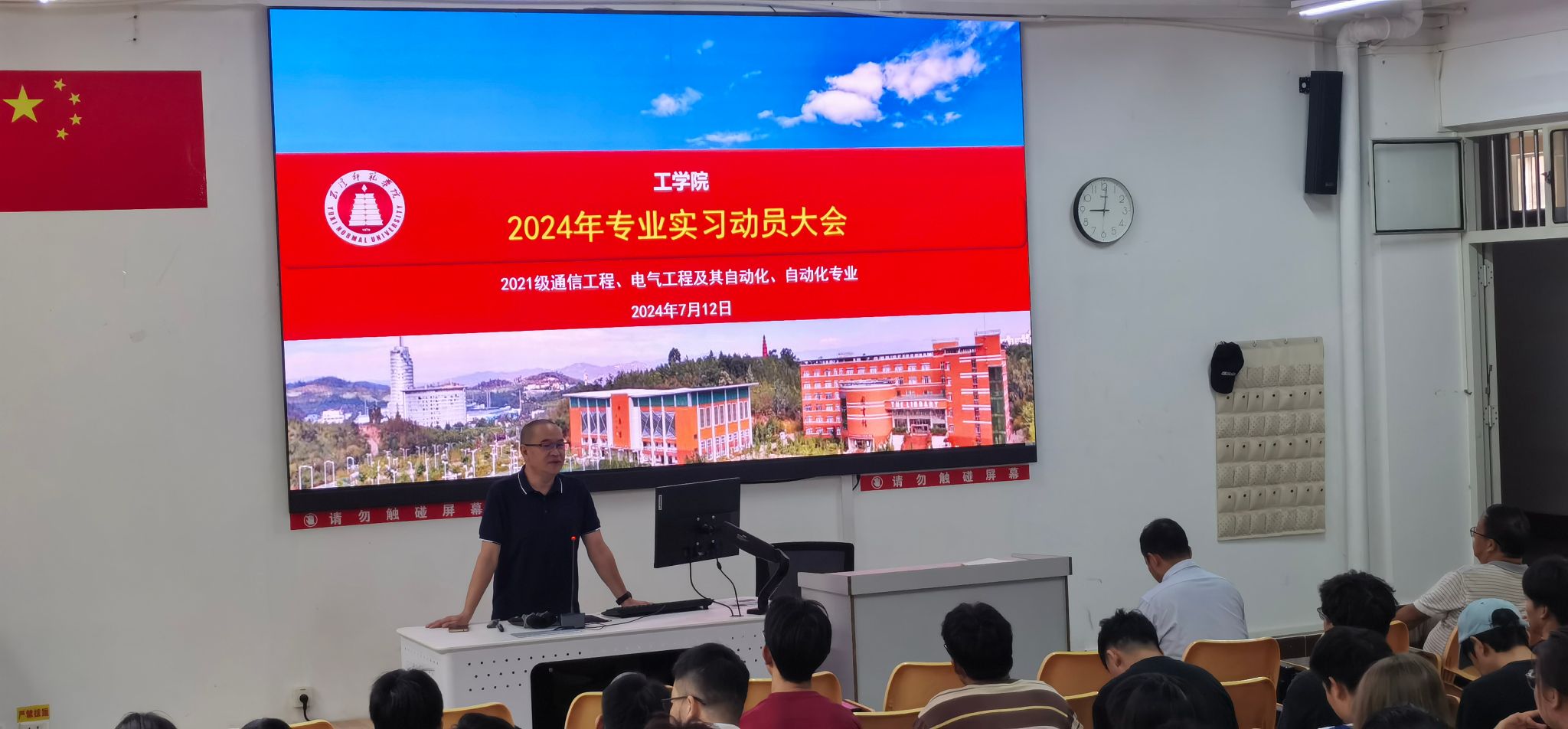 为确保工学院学生专业实习工作顺利开展,6月28日上午和7月12日下午,工学院分别在科学讲堂和14教102室召开“2024年专业实习动员大会”,旨在为即将开展专业实习的2021级计算机科学与技术、电气工程及其自动化、通信工程、自动化和计算机科学与技术专升本4个专业7个班342名实习生进行专业实习指导,强调专业实习纪律和安全防范措施。动员大会由副院长沐士光主持。