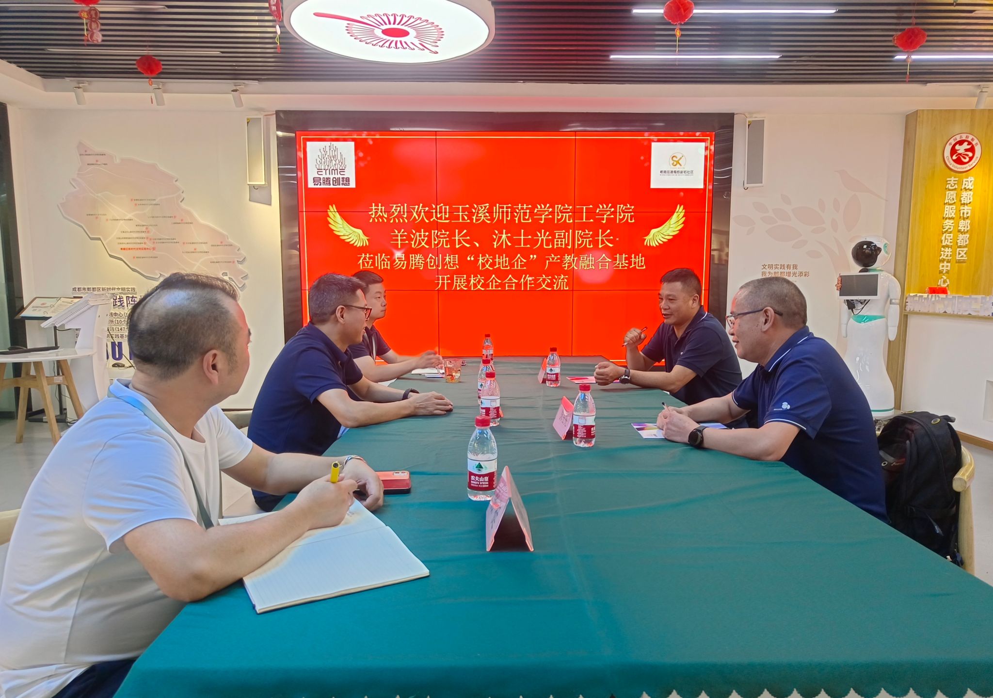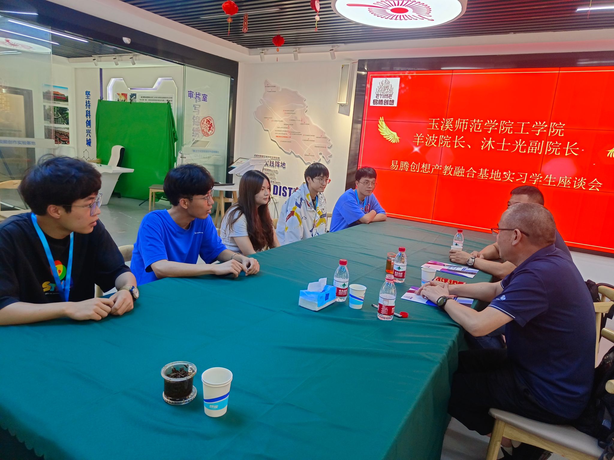 在上述实习基地,院长羊波一行分别与易腾创想总经理易伟春、千锋教育实习负责人王雪青,华清远见(成都)实习负责人张金亮等进行座谈,详细了解实习基地实习内容、进度安排以及我院学生近期的实习、住宿和用餐等详细情况,对后期实习工作及开展校企在课程实训、毕业设计、协同育人项目申报等方面开展合作进行了深入沟通交流。