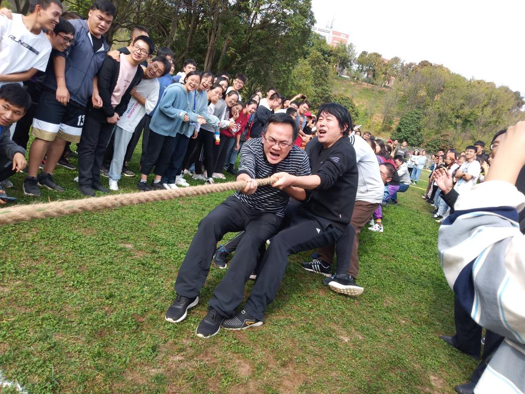 青春的脚步,快如金秋之风;绽放的笑容,灿若春晓之花。“年轻健儿气势如虹,老师团队风采不减,物理与电子工程学院师生运动会正式开始。首先,教师代表队与学生代表队进行拔河比赛,教师团队与学生团队分庭抗礼,同学们神采飞扬,老师们活力满满,展现出了一幅师生和谐向上的画面。一声哨响,比赛开始,紧张激烈,各不相让,加油声此起彼伏,老师团队积极竞争且有节奏的呐喊声最终赢得了比赛。在接下来的呼啦圈过山车比赛中,教师代表队再一次展现出强大的凝聚力及合作力,经过了几轮比试之后,老师们以超强的竞争精神赢得了本次比赛。