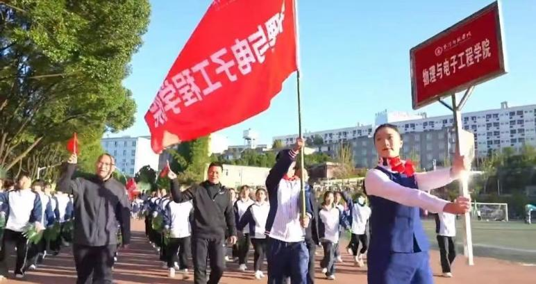 2022年11月17日9:00,玉溪师范学院第二十二届运动会在田径场拉开了序幕。