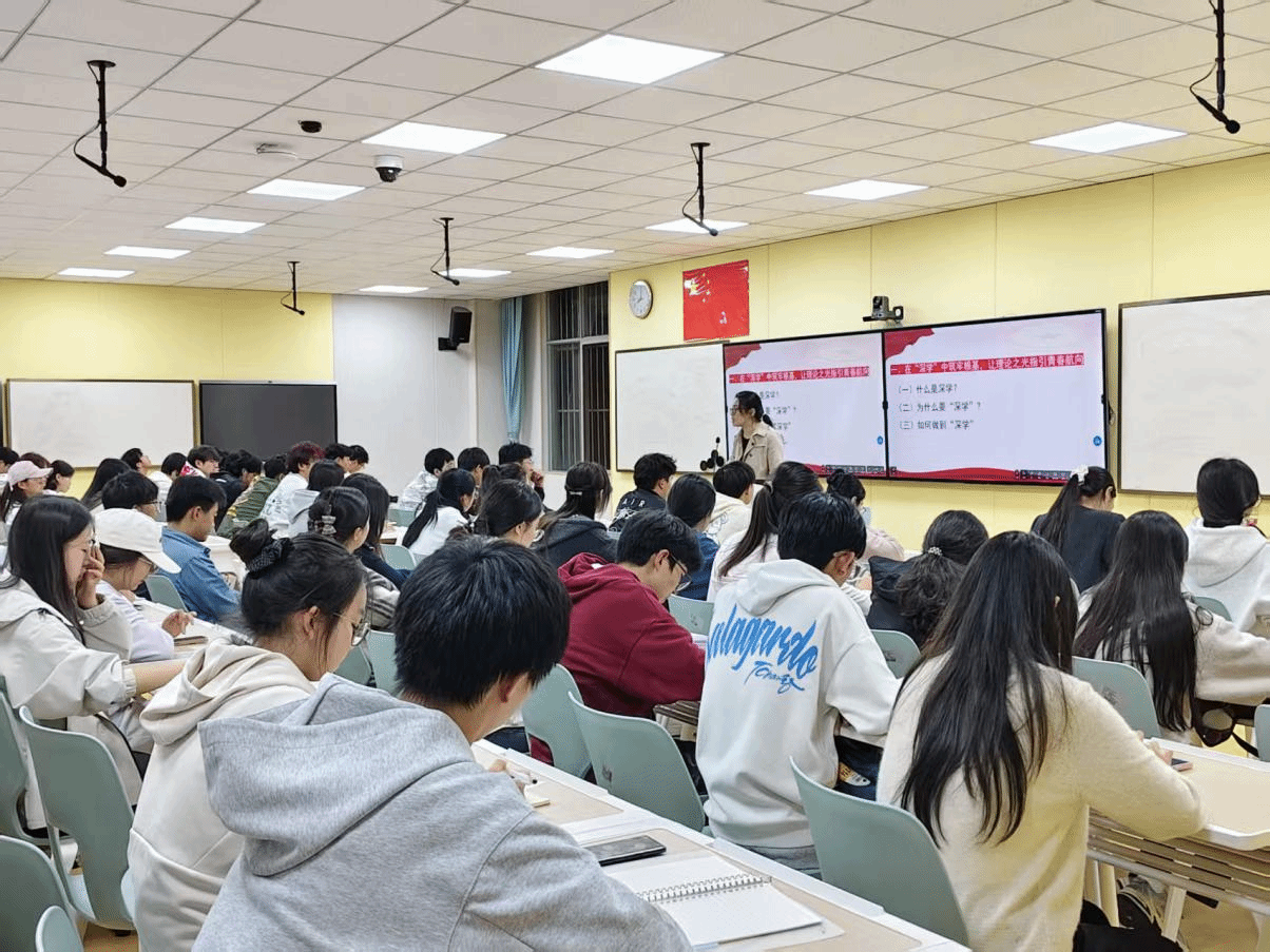 徐印芳以“深学细悟强信念,青春奋进跟党走”为题,围绕“在‘深学’中筑牢根基,让理论之光指引青春航向;在“细悟”中融会贯通,让真理之甘浸润青春心田”;在“强信念”中矢志不渝,让信仰之炬照亮青春征程;在‘实干担当’中历练自我,让砥砺奋斗写就青春底色”四个方面授课。