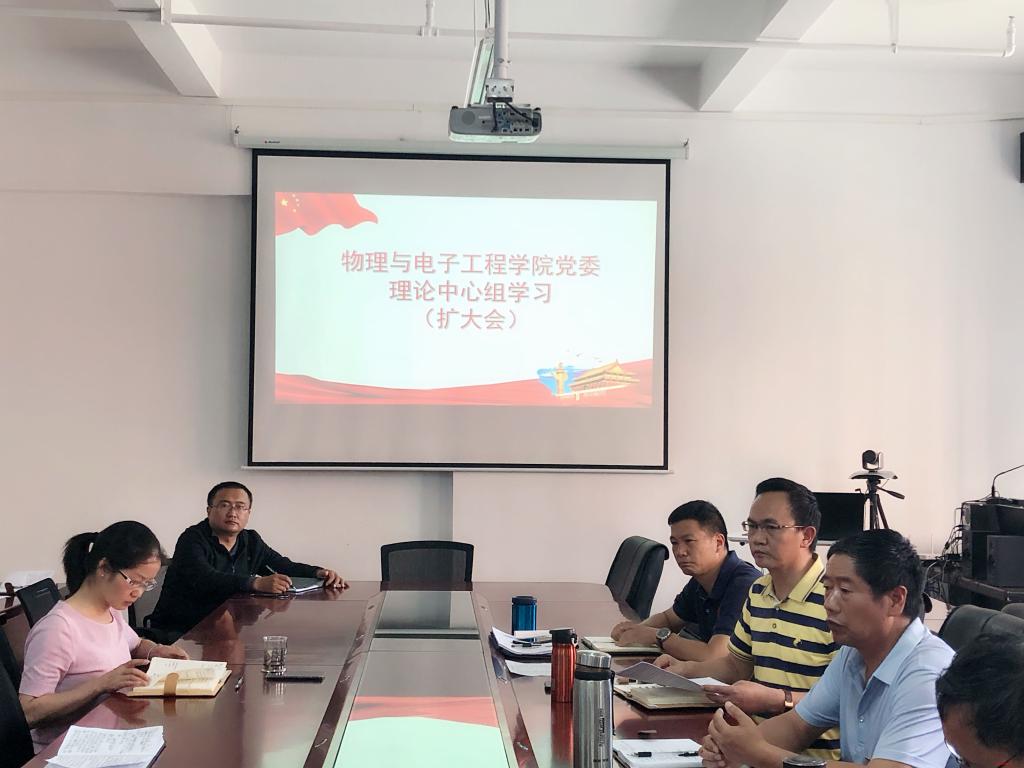 7月6日下午4:30,物理与电子工程学院在实训大楼B-101召开党委理论中心组学习扩大会暨教职工政治学习,物电学院全院教师参加了本次会议,会议由物电学院党委书记刘飞主持。