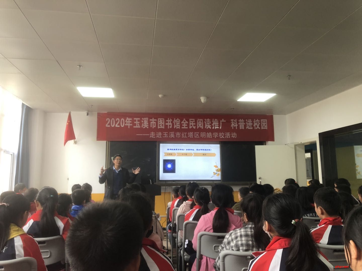 2020年10月16日,由玉溪市图书馆组织的科普进校园系列活动——走进玉溪市红塔区明皓学校活动在玉溪市红塔区明皓小学举办,我校天文科普团队应邀参加。