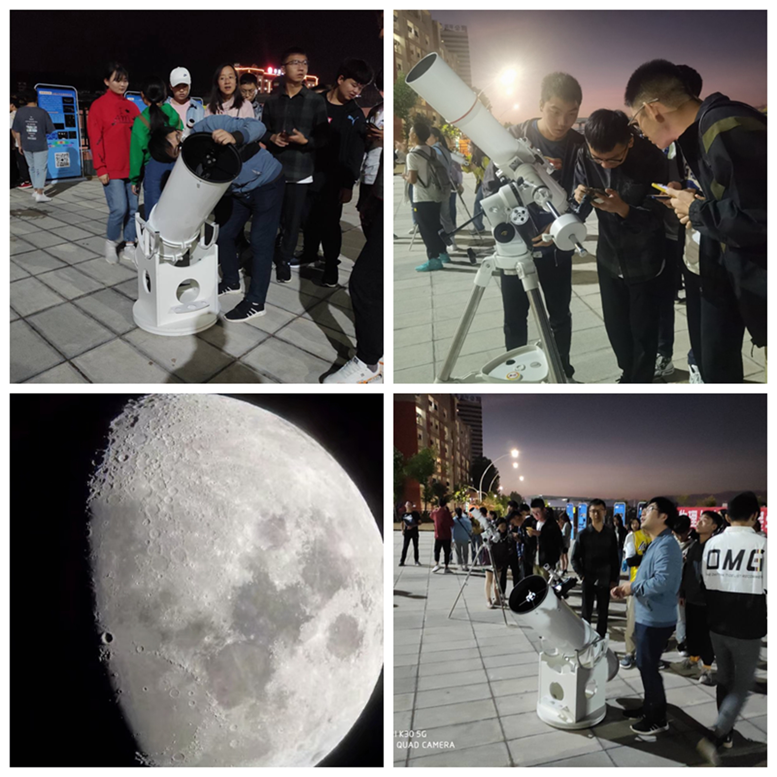19点00分,活动正式开始。指导老师和协会负责人教同学们使用天文望远镜,讲解其中天文望远镜的使用原理及其观测的天文对象的常识普及,同学们表现出积极的浓厚兴趣。同学们积极交流共同学习、分享天文知识,培养实践动手操作能力;提高协会社员团队意识;激发学习兴趣及其求知欲、好奇心;扩展青少年课外活动,丰富校园生活。