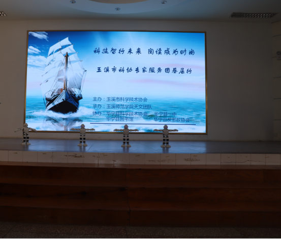 2021年4月21日,由玉溪市科协主办,玉溪师范学院天文团队承办的“玉溪市科协专家服务团基层行”的活动在华宁县中开展。本次的专家团队由羊波教授带领物理与电子工程学院天文团队组成。