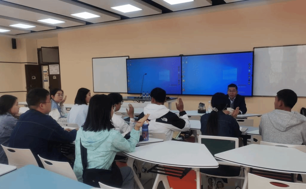 精彩的学术报告会后,戴教授应师生请求,又移步到我校智慧教室,耐心地与物理学考研上线的12位同学进行座谈式指导,为面临研究生招生面试的同学传授面试经验,指导同学如何开展研究生的学习。同学们踊跃提问,戴老师一一给与热心的解答。大三物理学的部分考研积极分子也一起参加了座谈。