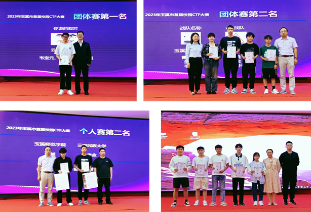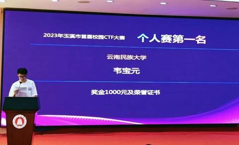 为了提升玉溪市在校学生的信息安全意识,强化校园信息安全教育,促进信息安全人才培养,发挥云南省智慧城市网络空间安全重点实验室的教育功能和影响力。4月13日下午在图书馆多元学术厅隆重举行玉溪市首届校园CTF大赛颁奖典礼,出席本次典礼的有丁治明院士、云南玉溪奇安信科技有限公司董事长王丹、重点实验室主任安镇宙、副主任于勇涛、工学院党委班子成员、本次CTF大赛获奖同学和指导教师,仪式由重点实验室副主任于勇涛主持。