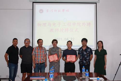 最后,羊波院长和李怀珍副院长分别为物电学院外聘的原会兰、杨发兵两位老师颁发了聘书,同时诚邀与会的各位专家能经常到学院进行交流指导或参与相关教学工作给学院助力。