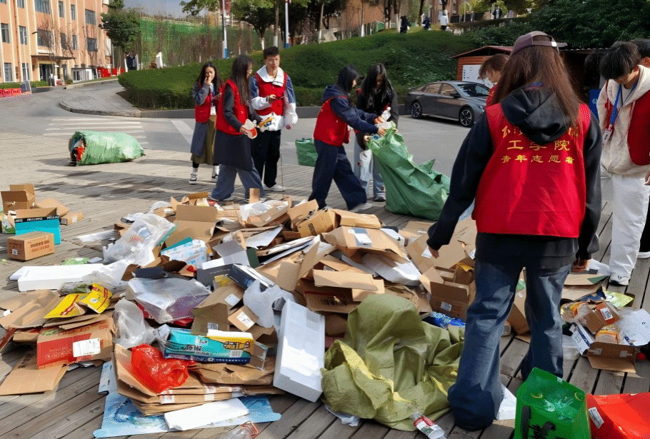 活动筹备阶段,协会各部门分工协作,提前对接校外废品回收人员与宿舍宿管,完成人员分组、物资筹备、宣传规划等各项工作,为活动开展做好充分准备。活动当日,志愿者在大学生活动中心楼顶集合,完成签到及物资、志愿服分发后,以小组为单位前往各宿舍开展回收工作。志愿者礼貌沟通,有序收集饮料瓶、废旧纸板等可回收物,做好整理与搬运工作;后续将回收物集中打包,由校外回收人员完成清运,活动全程规范有序。