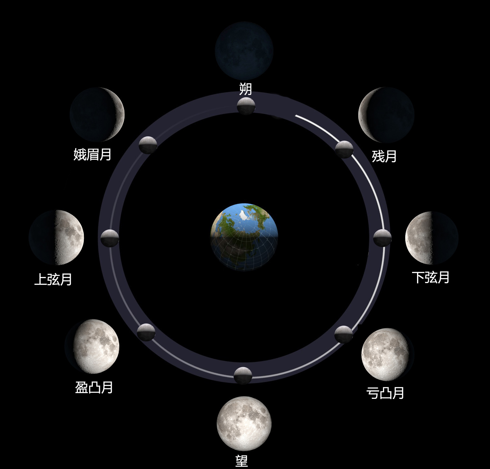 我们知道,月球是绕着地球转的,而地球又是绕着太阳转的,这就导致月球有时处于地球和太阳之间,这个时刻称为朔。而当地球处于太阳和月球之间时,称为望。中国农历历法规定:月相为朔的日期定为初一。